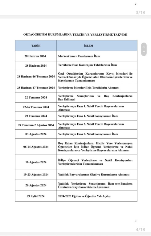 LGS Tercih ve Yerleştirme Takvimi